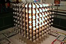 In March, 1961 a new science wing at the California Museum of Science and Industry[1] in Los Angeles opened. The IBM Corporation had been asked by the museum to make a contribution; IBM in turn asked the famous California designer team of Charles Eames and his wife Ray Eames to come up with a good proposal. The result was that the Eames Office was commissioned by IBM to design an interactive exhibition called Mathematica: A World of Numbers... and Beyond.[2] This was the first of many exhibitions designed by the Eames Office.