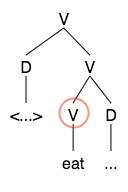 When we consider the features of the word that provide the label when the word projects, we assume that the categorical feature of the word is always among the features that become the label of the newly created syntactic object.[11] In this example below, Cecchetto demonstrated how projection selects a head as the label.