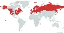 In the Palearctic it is found from Fennoscandia south to Iberia and the Mediterranean basin, and Ireland east through Europe into Russia and Japan. In the Nearctic it is found from British Columbia south to California. It has been introduced to New Zealand. (see map) [13]