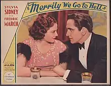Merrily We Go to Hell is a 1932 pre-Code film directed by Dorothy Arzner, and starring Fredric March and Sylvia Sidney. The supporting cast features a prominent early appearance by Cary Grant, billed ninth in the cast but with a larger part than this would suggest. The picture's title is an example of the sensationalistic titles that were common in the pre-Code era.[2] Many newspapers refused to publicize the film because of its racy title.[3] The title is a line March's character says while making a toast.[4]