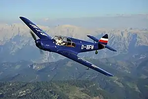 Originally designated the M 37, the aircraft was designed as a four-seat sports/recreation aircraft for competition in the 4th Challenge International de Tourisme (1934).[2][3] The M 37 prototype flew first in spring 1934, powered by a 250 PS (247 hp, 184 kW) Hirth HM 8U 8.0 litre displacement, air-cooled inverted-V8 engine, which drove a three-blade propeller.
