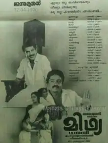 Midhya is a 1991 Malayalam-language film. Directed by I. V. Sasi, based on the script by M. T. Vasudevan Nair, this film stars Mammootty, Suresh Gopi, Rupini, Sukumari and M. G. Soman.[1]