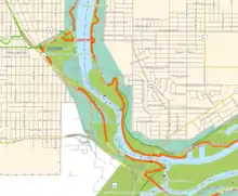Minnehaha Trail is a 1.5-mile (2.4 km) paved, multi-use trail in Minneapolis, Minnesota, United States, that connects Minnehaha Regional Park and Fort Snelling State Park – two of the most popular recreation destinations in the Twin Cities metro area. The trail is considered a segment of a longer, loosely connected bicycle route system along the Mississippi River. Users of Minnehaha Trail traverse under a forest canopy. The trail received local recognition for its natural beauty, but it was criticized for its worn pavement and lack of signage.[1]