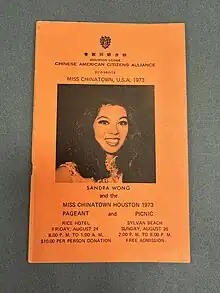 Miss Chinatown Houston was a beauty pageant founded by the Chinese American Citizens Alliance Houston chapter with the first pageant being held in 1971 in La Porte, Texas.[1] Miss Chinatown Houston is part of the greater Miss Chinatown USA pageants, the first of which was held in San Francsico, where the first Chinatown was established.