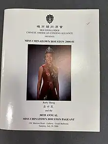 - ↑ "Houston Lodge Chinese American Citizens Alliance 30th Annual Miss Chinatown Houston Pageant Program". 2000.