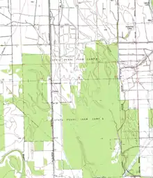 "Parchman" appears as a place on highway maps. The "Parchman" dot represents the MSP main entrance and several MSP buildings, with the prison territory located to the west of the main entrance.[55] The main entrance, a metal gate with "Mississippi State Penitentiary" in large letters,[55] is located at the intersection of U.S. Route 49W and Mississippi Highway 32,[56] on the west side of 49W.[55]