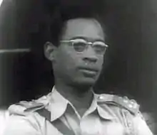 The British diplomat Brian Urquhart serving with the United Nations wrote: "When I first met Mobutu in July 1960, he was Prime Minister Patrice Lumumba's chief military assistant and had just promoted himself from sergeant to lieutenant-colonel. By comparison with his boss, Mobutu was a pillar of pragmatism and common sense. It was to him that we appealed when our people were arrested by Lumumba's hashish-stimulated guards. It was he who would bring up, in a disarmingly casual way, Lumumba's most outrageous requests – that the UN should, for example, meet the pay roll of the potentially mutinous Congolese army. In those early days, Mobutu seemed a comparatively sensible young man, one who might even, at least now and then, have the best interests of his newly independent country at heart."[28]