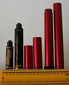 ![]() Anatomy of a basic black-powder model rocket motor. A typical motor is about 7 cm (2.8 in) long. 1. Nozzle; 2. Case; 3. Propellant; 4. Delay charge; 5. Ejection charge; 6. End cap |