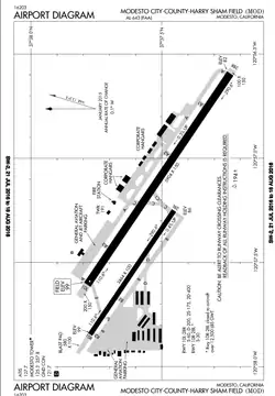 Modesto City–County Airport (IATA: MOD, ICAO: KMOD, FAA LID: MOD) (Harry Sham Field) is two miles (3 km) southeast of Modesto in Stanislaus County, California, United States.