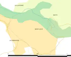 Mont-Louis is located in the canton of Les Pyrénées catalanes and in the arrondissement of Prades. Mont-Louis-La Cabanasse station has rail connections to Villefranche-de-Conflent and Latour-de-Carol.