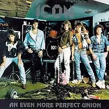 More Perfect Union is a 1987 release by American rock band Icon. The album, initially released on cassette only, featured a Capitol Records logo like their previous two major label albums, but was in essence an independent release as guitarist Dan Wexler states that, "We lost the deal from Capitol in October/November 1985."[1] After losing the deal and frontman Stephen Clifford, the band played a few shows with new singer Steven Young. However, before starting work on this album, he was replaced by Jerry Harrison, as guitarist John Aquilino was replaced by keyboardist Kevin Stoller, known for his work with Stevie Nicks among others. The cassette originally contained ten tracks, sold out quickly and became a sought-after collectible due to the band's worldwide cult status. Due to fan demand, the album was re-released in 1995 on CD with the title An Even More Perfect Union and included seven bonus tracks, selling initially as a limited numbered edition autographed by Dan Wexler. The later printings are easily identified as they have the logo and title in a different color.