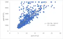 Monitoring changes in gas composition allows for an understanding of changes occurring in the associated volcanic system. Multi-GAS measurements of real-time CO2/SO2 ratios can allow detection of the pre-eruptive degassing of rising magmas, improving the prediction of volcanic activity.[1] As magma rises beneath the surface CO2 solubility decreases and the gas readily exsolves, leading to an increase in the CO2/SO2 ratio. A new input of CO2-rich magma into a previously degassed system would also cause the CO2/SO2 ratio to rise, indicating changes in volcanic activity.[1] During a two year study at Mount Etna quiescent periods had CO2/SO2 ratios <1, but during the lead up to an eruption values as high as 25 were seen.[1] Magmatic or hydrothermal input can be monitored by the temporal variations in H2S/SO2 ratios, advancing the understanding of future eruptive behavior.[15] CO2/H2S ratios are used to define the characteristic gas composition of the sampled area.[16] The ratio can be a tool for understanding how the magmatic gas may have been scrubbed.[16] Other molar ratios and gas species measured by a multi-GAS can provide information for further analysis of volcanic conditions.[3]