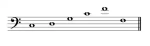 Another tuning of this kind was developed by members of the Bashir family: The player uses an F-course on the bass strings, tuned another octave lower as in the above-mentioned example; optional two F-strings can be put on, tuned in an octave-interval. Using this special tuning the melody course in the center of the fingerboard is framed by the bass courses. Tuned this way the oud has a really full sound and enables unusual melodies, but such a complex tuning system makes high demands on the picking and stopping techniques of the musician.