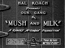 Mush and Milk is a comedy short subject; part of the Our Gang (Little Rascals) series. It was produced and directed by Robert F. McGowan for Hal Roach, and was originally released to theaters by Metro-Goldwyn-Mayer on May 27, 1933.[2] It was the 123rd Our Gang short to be released overall, and the 35th to include sound.