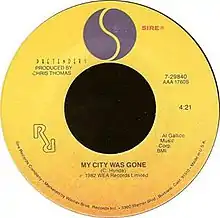 "My City Was Gone" is a song by the rock group The Pretenders. The song originally appeared in October 1982 as the B-side to the single release of "Back on the Chain Gang";[3] the single was the first release for the band following the death of founding bandmember James Honeyman-Scott. The song was included on the album Learning to Crawl, which was released in early 1984, and it became a radio favorite in the United States. It is sometimes referred to as "The Ohio Song" for its constant reference to the state.