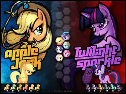 After each character's moveset was tested and refined based on testing feedback, the team then began to animate each character, first by creating Flash-based animations and then transforming these to sprites needed for Fighter Maker.[19] The team noted that the pony shape of the characters proved an additional challenge both visually and for the engine. With most fighting games, players can easily identify heads, arms, and legs, and know where to watch for attacks, but the same was not true for the ponies. They proceeded to add effects like sparks on the attacking character and opponent responses to help players recognize attacks.[19] In terms of the engine, the hitboxes for the ponies were more horizontal than vertical as would be the case with humanoid fighter characters, and they had to work around this in the engine to accurately model attacks.[19] Additionally the more horizontal shapes of the characters limited how much of the fighting stage space they could use; they overcame this within the game by using a 3/4ths view of the characters that shortened their on-screen lengths giving them more space to work with.[11]