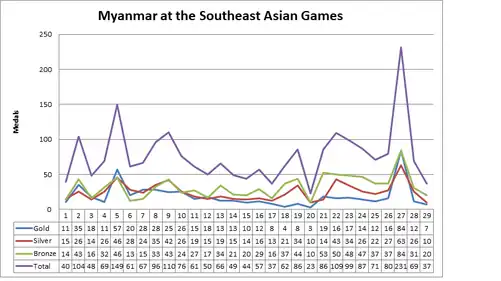 Myanmar is one of the founding six countries of the SEAP Games.At that time, the country used the name Burma and so hosted the 2nd SEAP Games in 1961.[1] Myanmar hosted 5th SEAP Games in 1969 for the second time. After that, due to political reasons, Myanmar was no longer hosted the games. However, sport delegations were sent annually. After 44 years later, Myanmar hosted again the 27th SEA Games in 2013.