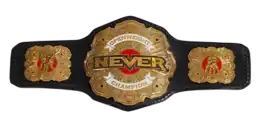 The NEVER Openweight Championship (NEVER無差別級王座, NEVER musabetsu-kyū ōza) is a professional wrestling championship owned by the New Japan Pro-Wrestling (NJPW) promotion. NEVER is an acronym of the terms "New Blood", "Evolution", "Valiantly", "Eternal", and "Radical" and was an NJPW-promoted series of events, which featured younger up-and-coming talent and outside wrestlers not signed to the promotion.[1][8] The project was officially announced on July 12, 2010,[8] and held its first event on August 24, 2010.[9] On October 5, 2012, NJPW announced that NEVER was going to get its own championship, the NEVER Openweight Championship.[1][2] The current champion is Tama Tonga, however on January 10, 2023, EVIL took to Twitter to announce that Tama Tonga has been released from New Japan Pro Wrestling, their scheduled match on January 20, 2023 at The New Beginning in Nagoya has been cancled, and EVIL is now recognized as the NEVER Openweight Champion. The NJPW official website listed EVIL as the NEVER Openweight Champion, and removed Tama Tonga, but an offcial statement from NJPW has yet to be released, and it is currently unknown if this is part of a storyline, or a real world event.