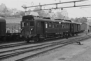 The Voss Line was electrified on 2 July 1954. Bergen District received five Class 65 for the local traffic, and the Class 83s were sent to Oslo District. There they were mostly used on the Skreia Line.[1] The units were renumbered on 3 June 1956, becoming Class 83. They received numbers 83.36 through 83.38.[2] The latter returned to Bergen in January 1957, but sent back to Eastern Norway during the summer. A few months later 83.36 was sent back to Bergen. It was put into service on the run through Raundalen which runs east of Voss Station. However, the unit was too heavy for the gradients and was little used because of faults. A Class 91 took over the run in 1961, with the 83-unit as a reserve. It was retired on 15 October 1962. The units on the Skreia Line were taken out of service on 1 January 1961 and were finally retired on 27 April 1963.[1] All three units have been chopped.[2]