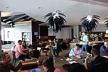 The main terminal building contains a combined check-in hall for domestic and international flights. It has 58 check-in counters, in addition to self-service check-in kiosks. A common baggage claim hall is also located on the ground floor.[37] There is a large retail area on the first floor, with many food and retail outlets as well as waiting areas. A major feature of the terminal is a $15 million state-of-the-art baggage handling system, which is 750 metres long.[38]