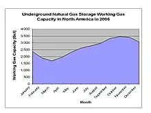 - ↑ Canadian Gas Association-Natural Gas Storage, monthly data Archived 2007-03-03 at the Wayback Machine