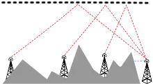Near vertical incidence skywave, or NVIS, is a skywave radio-wave propagation path that provides usable signals in the medium distances range — usually 0–650 km (0–400 miles). It is used for military and paramilitary communications, broadcasting,[1] especially in the tropics, and by radio amateurs for nearby contacts circumventing line-of-sight barriers. The radio waves travel near-vertically upwards into the ionosphere, where they are refracted back down and can be received within a circular region up to 650 km (400 miles) from the transmitter.[2] If the frequency is too high (that is, above the critical frequency of the ionospheric F layer), refraction is insufficient to return the signal to earth and if it is too low, absorption in the ionospheric D layer may reduce the signal strength.