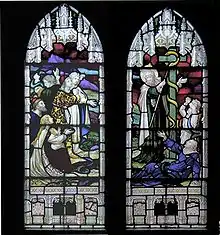 Moses lifts up the brass snake in a photograph of the stained glass window at St Marks Church, Gillingham