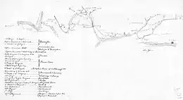 A hand-drawn period sketch depicting the locations of British outposts in New Jersey. Orientation is with north to the right.