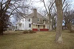 The Newdigate-Reed House is a two-story log house built by the Newdigate family at the top of the hill near the Lexington-Maysville Turnpike.[1] John Newdigate, a farmer, is listed as the landowner in 1854.[2] Situated at the top of a steep hill leading out of Maysville, the house served as a convenient rest stop for merchants and wagon masters hauling goods from the docks at Maysville to points south.