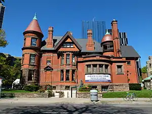 The Newman Centre is one of the city's preserved examples of Romanesque Revival architecture. In 1977, it became one of the first buildings in Toronto to receive heritage status from the Ontario Heritage Trust.[1] The cost of maintenance is met by the Archdiocese of Toronto. The site has been used for filming, including scenes from Spotlight, Suits, The Odd Squad and Storage Wars.[2]