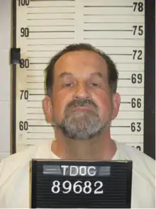After his conviction, Sutton initially served his sentence at the Brushy Mountain State Penitentiary before being transferred to the maximum security Morgan County Correctional Complex in Wartburg.[2] While in prison, he continued using and dealing drugs to fellow inmates, one of whom was 44-year-old Carl Isaac Estep, who was serving a life term for raping a 9-year-old girl in Knoxville. In early January 1985, the two got into a dispute over drugs, with Estep threatening to kill Sutton using a homemade knife. In response, Sutton and three other inmates (23-year-old Charles Arnold Freeman; 33-year-old Thomas Street and 22-year-old David Wesley Stufflestreet) decided to arm themselves with knives and take revenge on Estep. On January 15, the quartet went to Estep's cell and stabbed him 38 times.[17] None were charged until May 20, with Sutton, Freeman and Street being charged with first-degree murder while Stufflestreet was charged as an accessory.[17] In March 1986, the jury found Sutton and Street guilty on the murder charge, sentencing the former to death and the latter to life imprisonment; Freeman and Stufflestreet were each acquitted.[18]