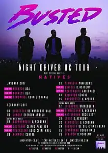 The Night Driver Tour 2017 was a 2017 concert tour by English pop rock band Busted in support of the band's third studio album Night Driver (2016).[1] It was their second tour since their split in 2005.[1]