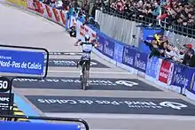 - ↑ "Niki Terpstra solos to triumph on the Roubaix velodrome". VeloNews. 13 April 2014. Retrieved 11 September 2014.