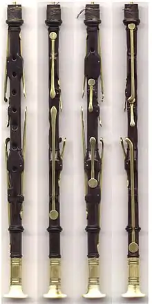 A detailed account of the construction of Northumbrian smallpipes written by William Alfred Cocks and Jim F. Bryan[5] was published in 1967 by the Northumbrian Pipers' Society; it was very influential in promoting a revival of pipemaking from that time. This is now out of print, however. Another description, by Mike Nelson, is currently available. Nelson's designs also include the "School Pipes", G-sets with plastic components, made to be used in schools in Northumberland.[6] These two accounts differ rather in their objectives, as Cocks and Bryan was based on descriptions of existing sets, notably by Robert Reid, Nelson being a description of his own design.