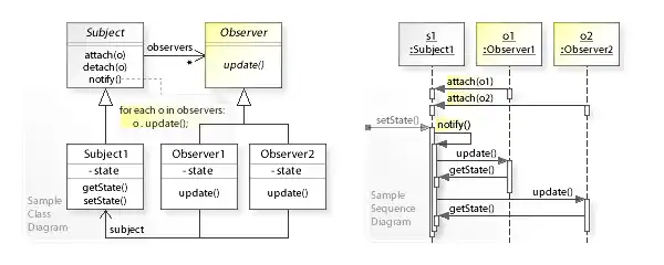 - ↑ "The Observer design pattern - Structure and Collaboration". w3sDesign.com. Retrieved 2017-08-12.