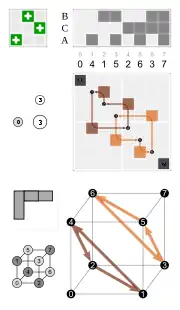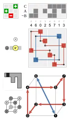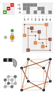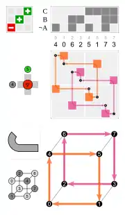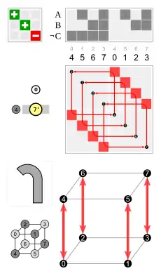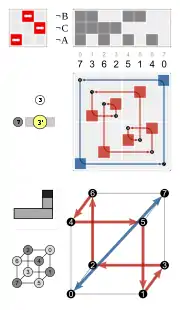 • by a permutation of the four body diagonals (each of the 24 permutations is possible), combined with a toggle for inversion of the cube, or not