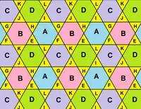 The topological net of faces can be arranged as a rhombus divided into 8 triangles and 4 hexagons. All vertex angle defects are zero.