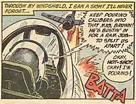 Okay Hot-Shot, Okay! is one of several comics-based works, including Jet Pilot and Von Karp, inspired by the World War II U.S. fighter pilot Johnny Cloud of DC Comics' The Losers.[9] The January–February 1962 DC Comics' All-American Men of War issue #89 was the inspiration for several Lichtenstein paintings, providing two of the source panels of Okay Hot-Shot, Okay! as well as sources for Brattata, Blam, Whaam! and Tex![10] The graphite pencil sketch, Jet Pilot was also from that issue.[11]