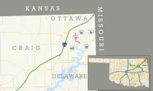 - 1 2 Oklahoma Department of Transportation (n.d.). Control Section Maps: Ottawa County (PDF) (Map) (2010–2011 ed.). Scale not given. Oklahoma City: Oklahoma Department of Transportation. Retrieved 2012-08-09.