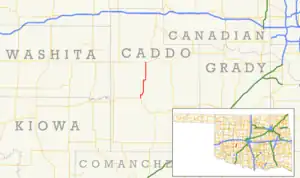 - 1 2 Oklahoma Department of Transportation (n.d.). Control Section Maps: Caddo County (PDF) (Map) (2010–2011 ed.). Scale not given. Oklahoma City: Oklahoma Department of Transportation. Retrieved November 12, 2012.