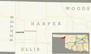 - 1 2 Oklahoma Department of Transportation (n.d.). Control Section Maps: Harper County (PDF) (Map) (2010–2011 ed.). Scale not given. Oklahoma City: Oklahoma Department of Transportation. Retrieved November 2, 2012.