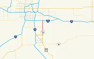 State Highway 77H is a spur that runs from US-77 in Norman, north through a small piece of unincorporated Cleveland County and Moore, to Oklahoma City. The state highway designation ends at I-240, although Sooner Road continues north to its terminus at I-35, I-44, Turner Turnpike, Kilpatrick Turnpike, and SH-66.