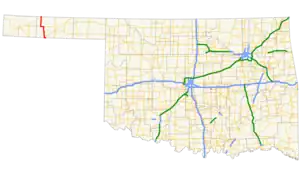 State Highway 95 (abbreviated SH-95) is a state highway in the Panhandle region of the U.S. state of Oklahoma. This route, which is 42.1 miles (67.8 km) long, runs entirely through western Texas County. SH-95 does not have any lettered spur routes.