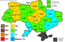 60% нової Київради - представники "УДАРу" [60% of the new Kyivrada is filled by UDAR]. Ukrayinska Pravda (in Ukrainian). June 4, 2014. Retrieved June 4, 2014. - ↑ "УДАР" бере 75% у Київраді по мажоритарці [UDAR has 75% of the constituencies in Kyivrada14]. Ukrayinska Pravda (in Ukrainian). June 4, 2014. Retrieved June 4, 2014.
