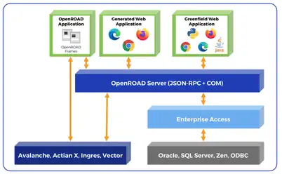 The OpenROAD Server enables business logic written in the OpenROAD 4GL language to be accessed by client applications. The OpenROAD Server is multi-threaded and allows concurrent access from a number of client interfaces. These client interfaces include the following:[2]