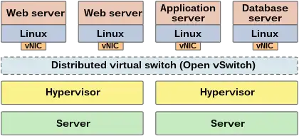 Open vSwitch can operate both as a software-based network switch running within a virtual machine (VM) hypervisor, and as the control stack for dedicated switching hardware; as a result, it has been ported to multiple virtualization platforms, switching chipsets, and networking hardware accelerators.[7] Open vSwitch is the default network switch in the XenServer virtualization platform since its version 6.0,[8] and in the Xen Cloud Platform via its XAPI management toolstack.[9] It also supports Xen, Linux KVM, Proxmox VE and VirtualBox hypervisors, while a port to Hyper-V is also available.[10] Open vSwitch has also been integrated into various cloud computing software platforms and virtualization management systems, including OpenStack, openQRM, OpenNebula and oVirt.[4][5]