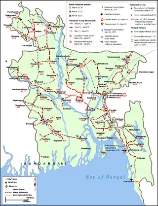 - ↑ Shafiullah, Maj. Gen. K.M., Bangladesh at War, p. 108