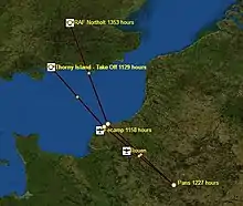 - ↑ "The RAF pilot who dropped the Tricolor on occupied Paris". The Daily Telegraph. London. 27 November 2012. Archived from the original on 27 November 2012. Retrieved 10 January 2013.