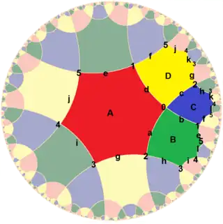 In geometry, the order-4 hexagonal tiling is a regular tiling of the hyperbolic plane. It has Schläfli symbol of {6,4}.