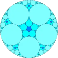 In the geometry of hyperbolic 3-space, the order-5-3 apeirogonal honeycomb or ∞,5,3 honeycomb a regular space-filling tessellation (or honeycomb). Each infinite cell consists of an order-5 apeirogonal tiling whose vertices lie on a 2-hypercycle, each of which has a limiting circle on the ideal sphere.